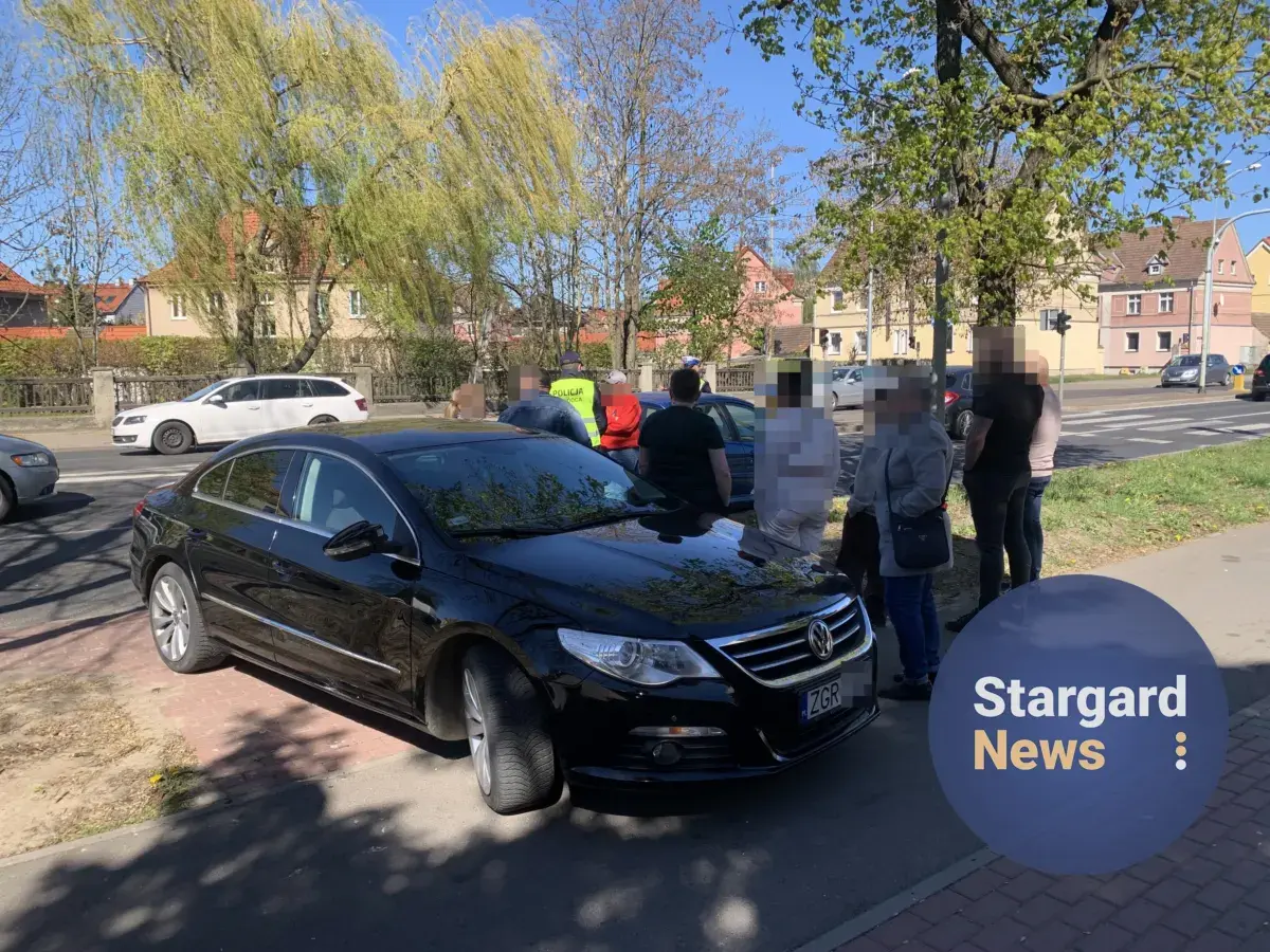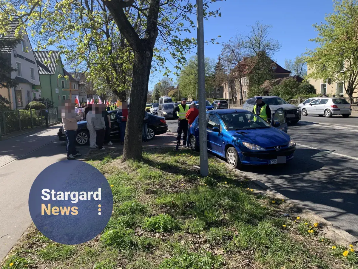 Do zdarzenia doszło dzisiaj krótko po godzinie 15 na ulicy Szczecińskiej w Stargardzie, na jezdni w kierunku centrum miasta, przed skrzyżowaniem z ulicą Kościuszki. Reporter Stargard.News był wtedy w pobliżu, przygotowując relację z odbywającego się dziś w Stargardzie Marszu w Obronie Krzyża i Wiary. Marsz zabezpieczany był przez policję i to właśnie jeden z radiowozów będących przy tym wydarzeniu jako pierwszy interweniował w miejscu kolizji.