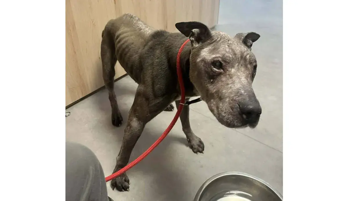 Zastali psa, który był w złym stanie. Miał trudności z poruszaniem się, był wyraźnie niedożywiony, na ciele widoczne były liczne ubytki skóry.